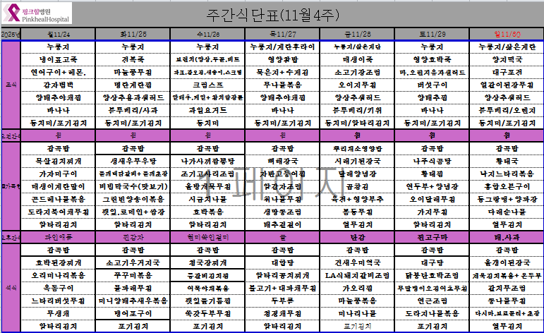 2025.11월 04주차식단표(11.24~11.30)