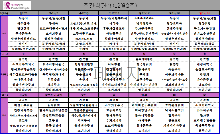 - 핑크힐 식단표
