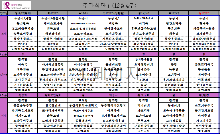 2025.12월04주차 식단표(12.22~12.28)