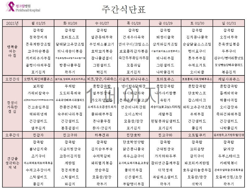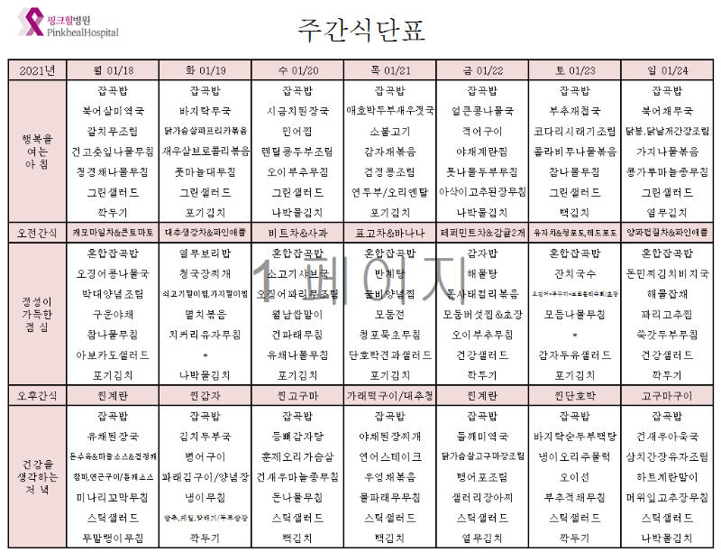 - 핑크힐 식단표